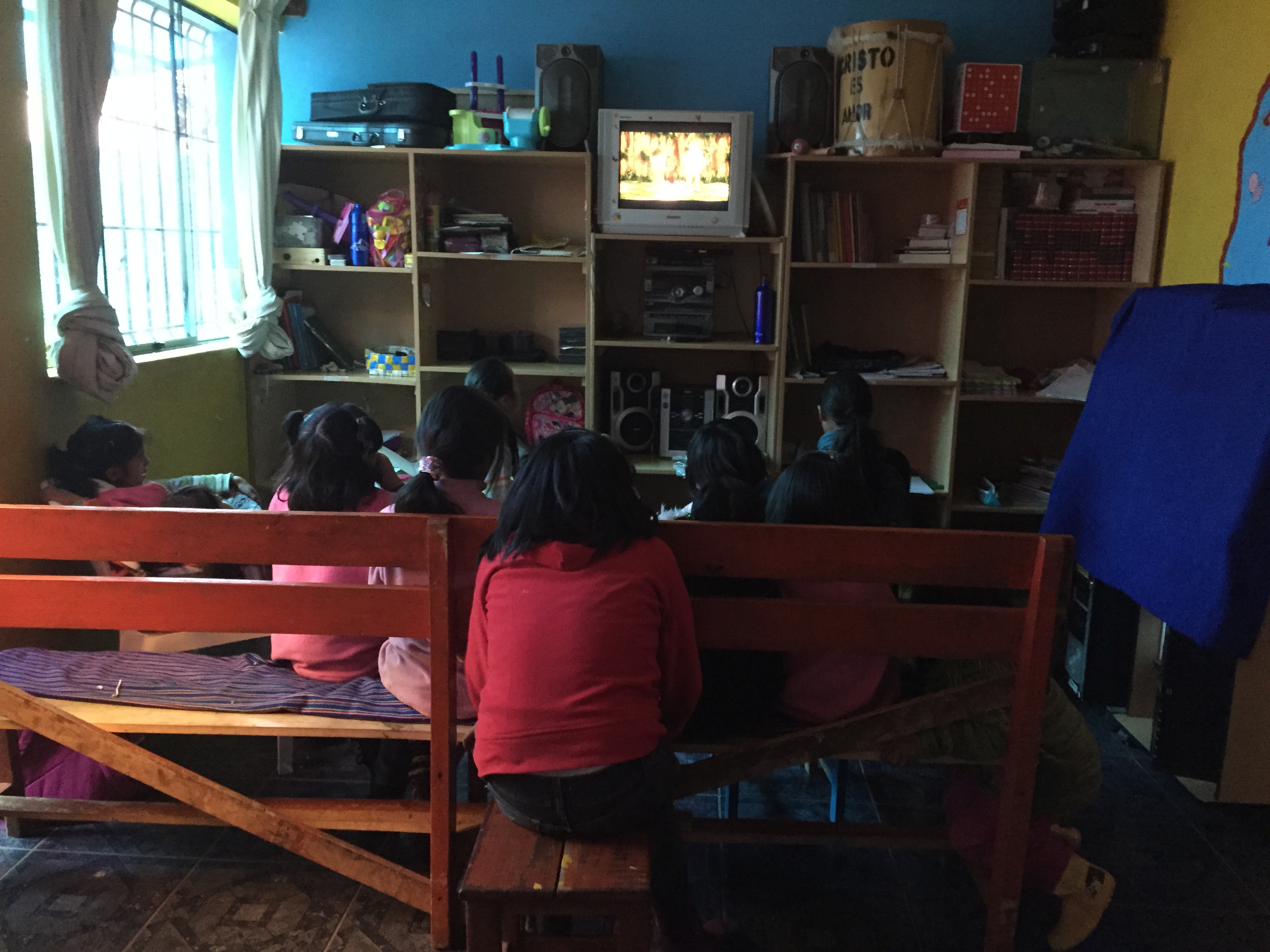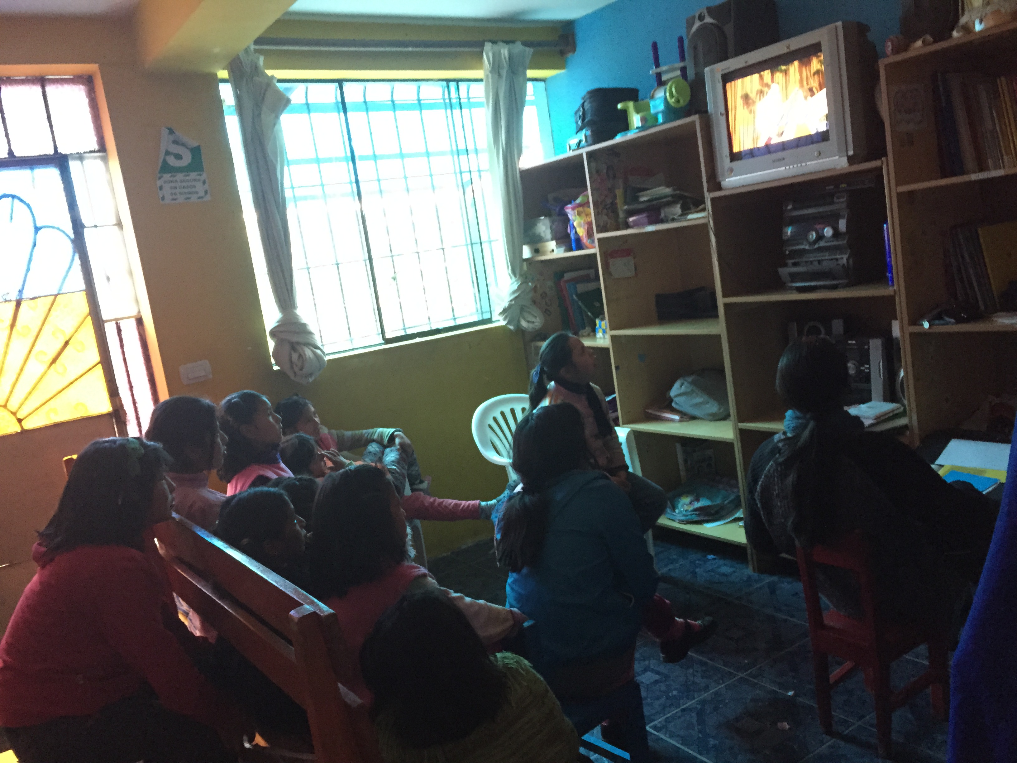 On the weekends the girls tend to spend the day doing chores and the younger ones watch tv, which is on the top shelf in the music room which they watch movies on, today was Tarzan which they had never watched before. I helped mamita Remigia make the afternoon lunch, it does take time to prepare so i helped her make the batter for the cauliflower fritters, then i sat with the rice and searched for stones and bad rice, they do not have pre washed basmati rice like what we get from the local supermarket. We played a few games too and time just flew by.