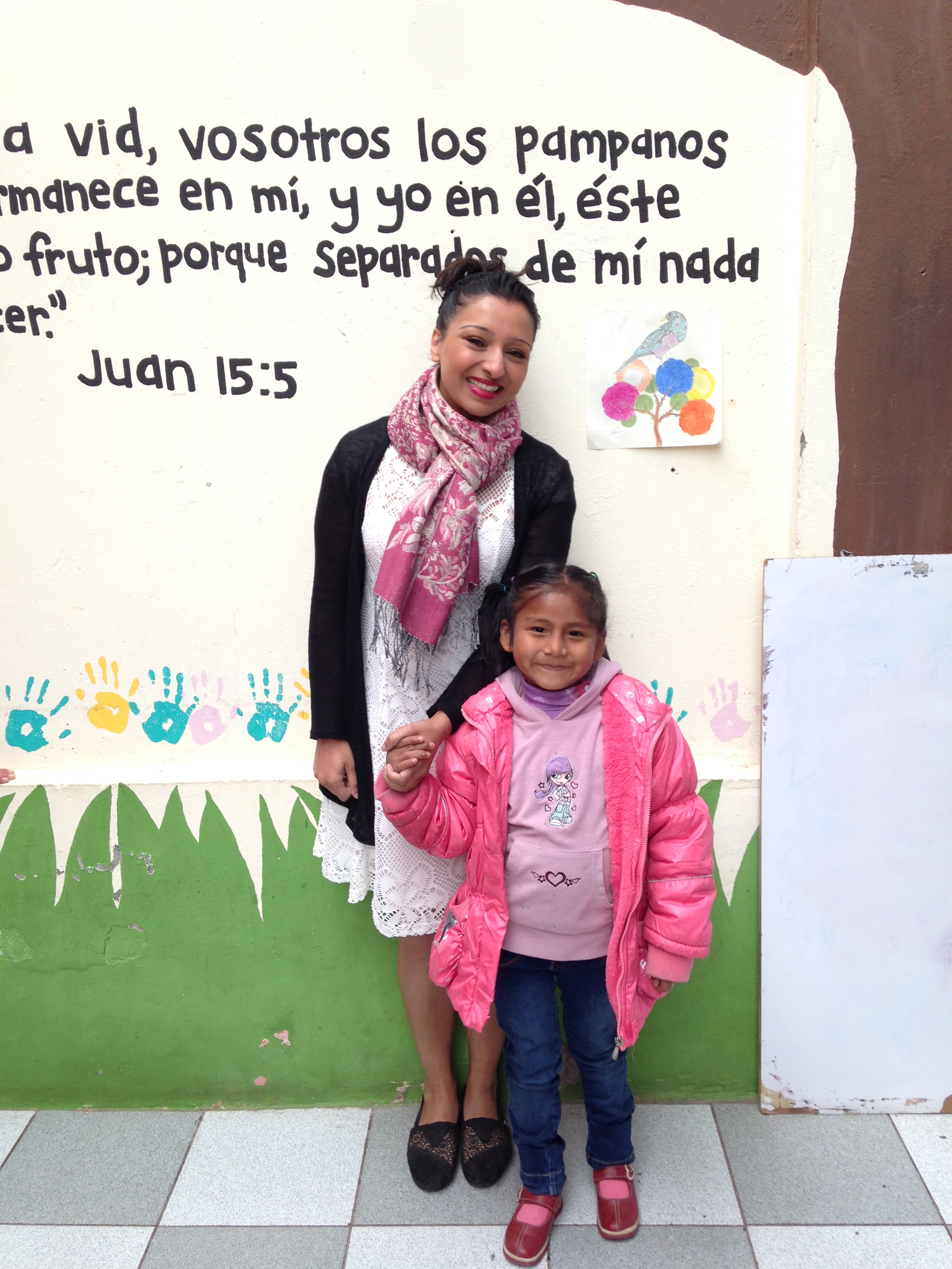 So once they had finished breakfast i went back downstairs and watched them get ready for church, it is always so nice to see them help each other come their hair and make sure they have their coats on and shoes, although as the weather has been so cold they pretty much wear their coats from morning till bedtime. We then had to make sure we all knew who’s hand we were going to hold and of course i got the little niña Jesenya as she needed to be with a grown-up, she is just so tiny and the cutest little thing ever and probably weighs less than a bag of sugar.