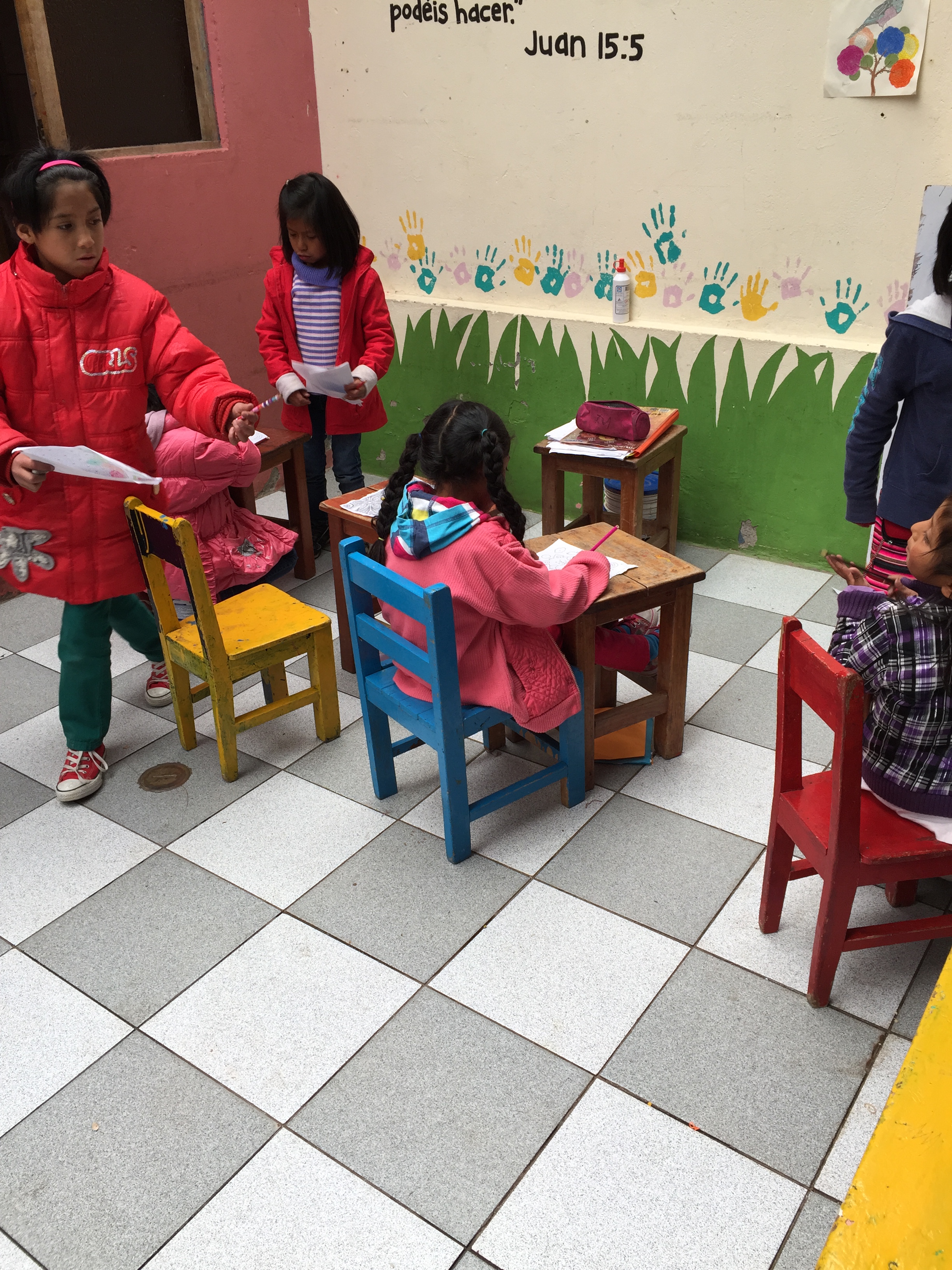 The younger girls went upstairs once the ceremony started to make pictures and i guess would not be able to sit still like the older kids. The pastor started reciting verses from the bible and again it was all in Spanish but i did understand the moral of the service today was Importance. It was very moving and as i sat there all i could think of was the girls i have grown to love and i prayed to God that he looks after them and looks after all these children whether they are in Peru or the rest of the world. I prayed that they are always protected and that although these are good times for them as it is all they know, in my heart i want him to give them more, i want him to really help these children through life and give me the will-power to assist in doing so.
