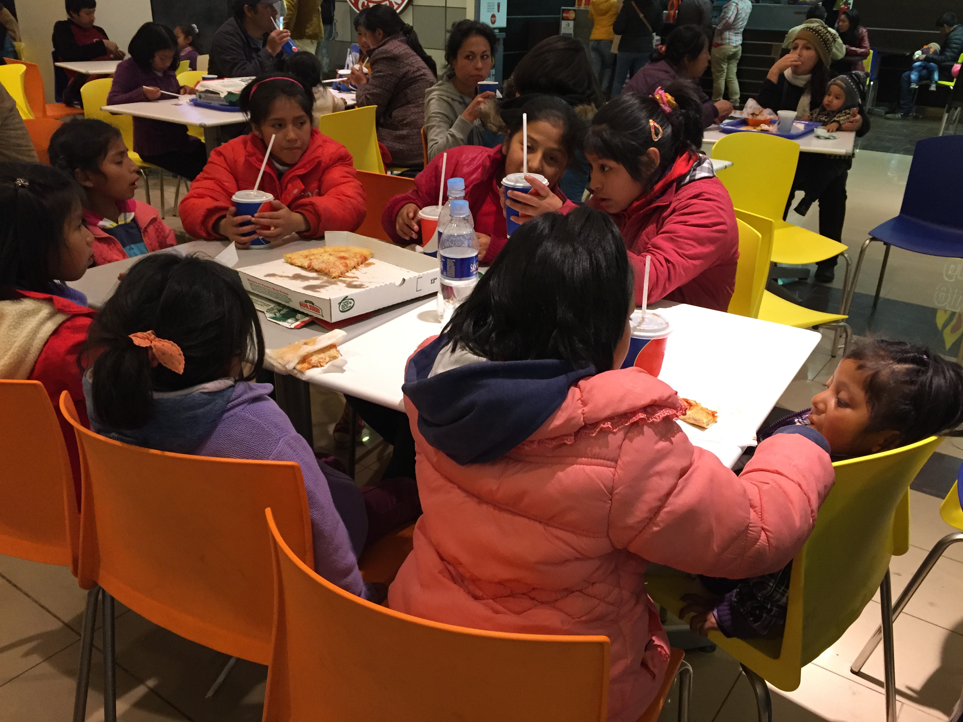 So after the movie it was time for dinner as it was now approaching 18.00 and they knew they would be getting pizza. We managed to grab a few empty tables and bring them together so we could all be together as much as possible and keep an eye on them of course. I went up and got pizzas and drinks and they happily sat and ate all their food and were just well behaved giggling girls enjoying their treat.