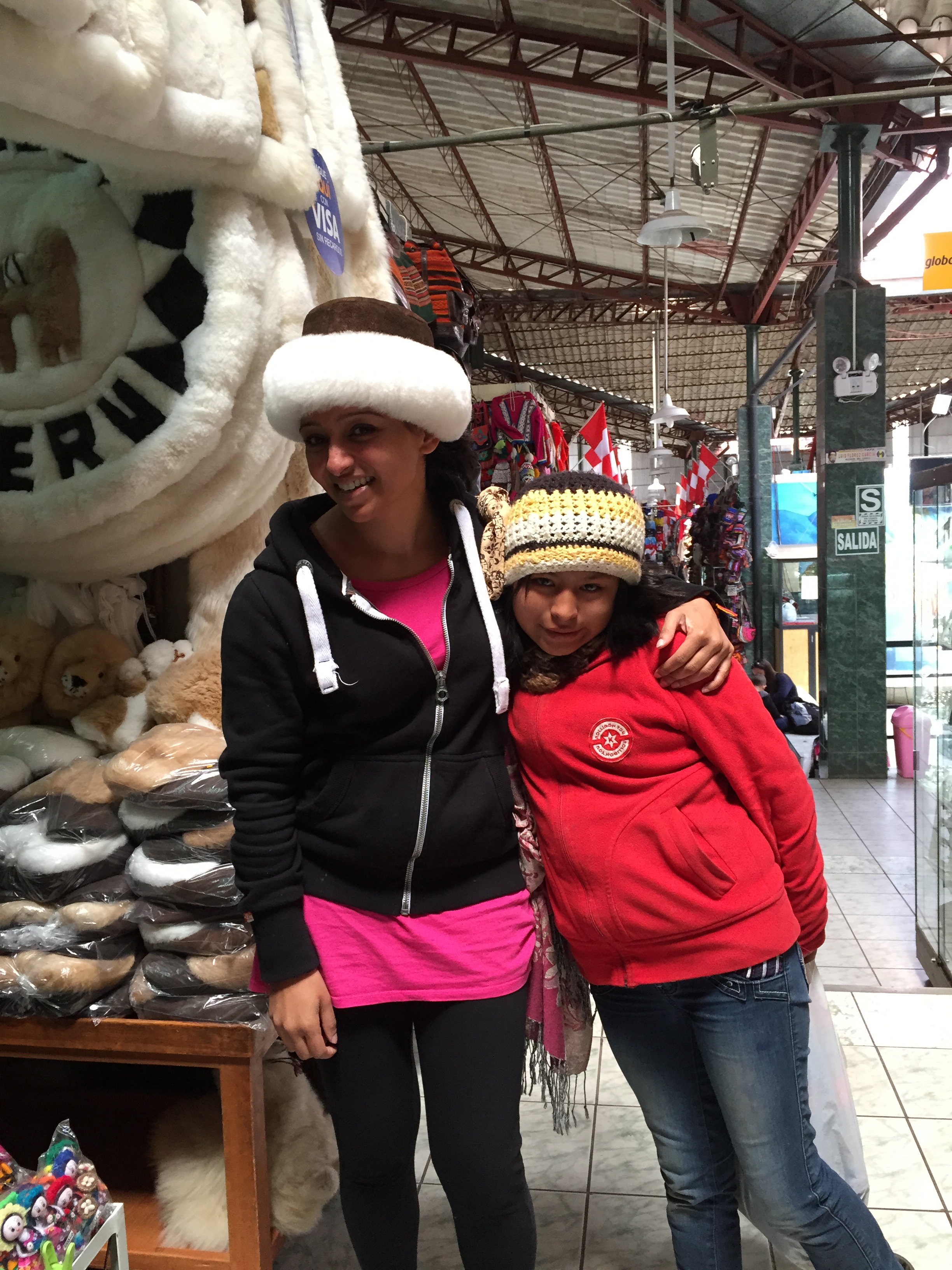 So we started off at the pharmacist and i got some Peruvian lemsip and throat numbing lozenges, the most vile lozenges i have ever had to take but they seem to calm my coughing down even though i felt quite sick from the lack of taste. We walked across to the little market and i bought them some meringues which did actually look rather nice but not as chewy as i had hoped, the girls on the other loved them and i even treated them to a bottle of Fanta, as there was much walking to be done. I then asked the girls if they would like to go the market with me, there is this great market of all things Cusco Peruvian which i have looked around many of times and i just knew they would love the real Llama fur that i fell in love me and got great enjoyment from just standing around feeling the extremely soft Llama fur. We started off in what looked like a black market stalling and we walked around there for a little while before asking for directions to this market i love so much. I knew where it was but they wanted to know just how far it was and i was unable to say the exact distance to them in Spanish, ‘just over there’ didn’t quite do it for them.