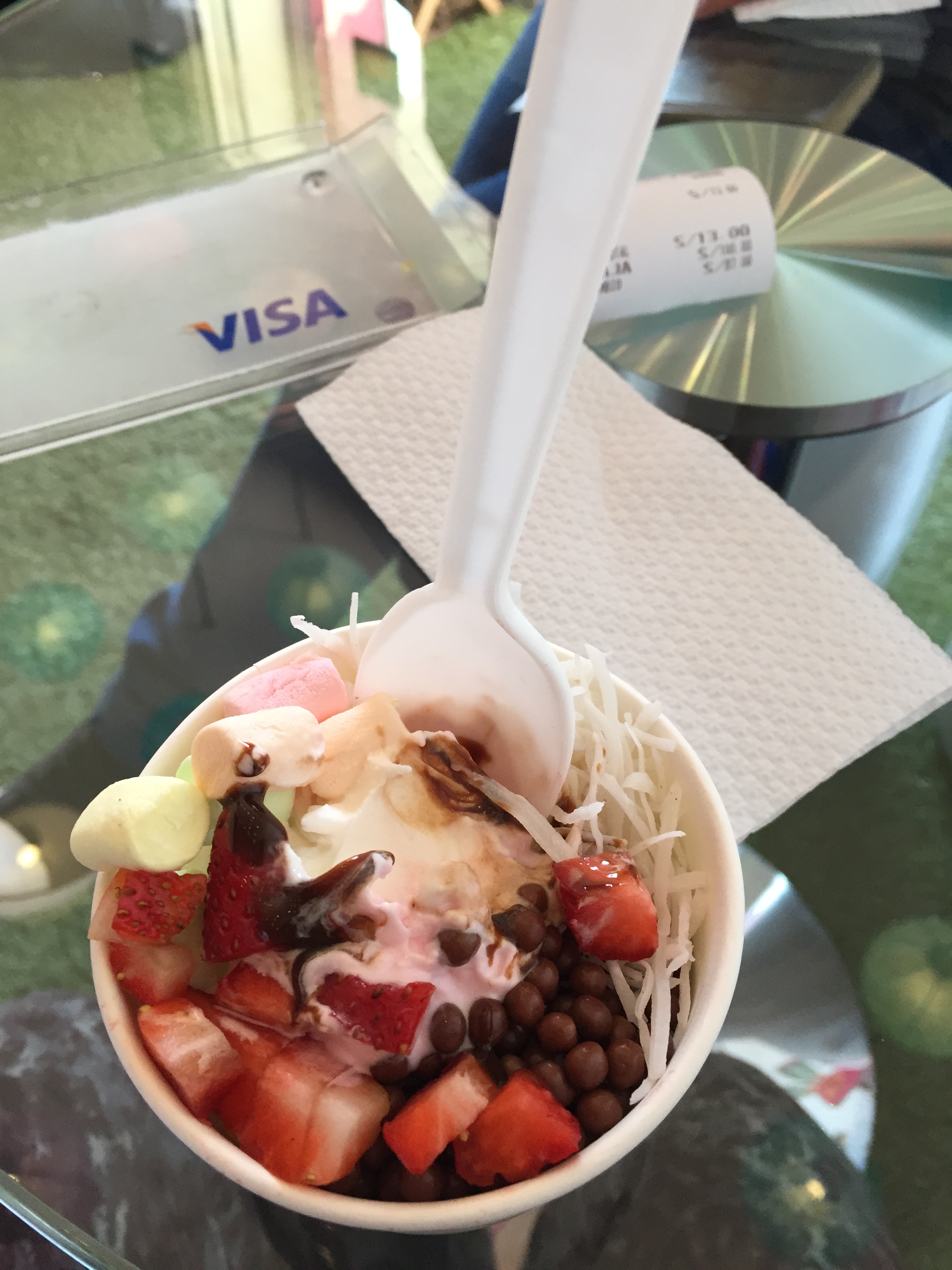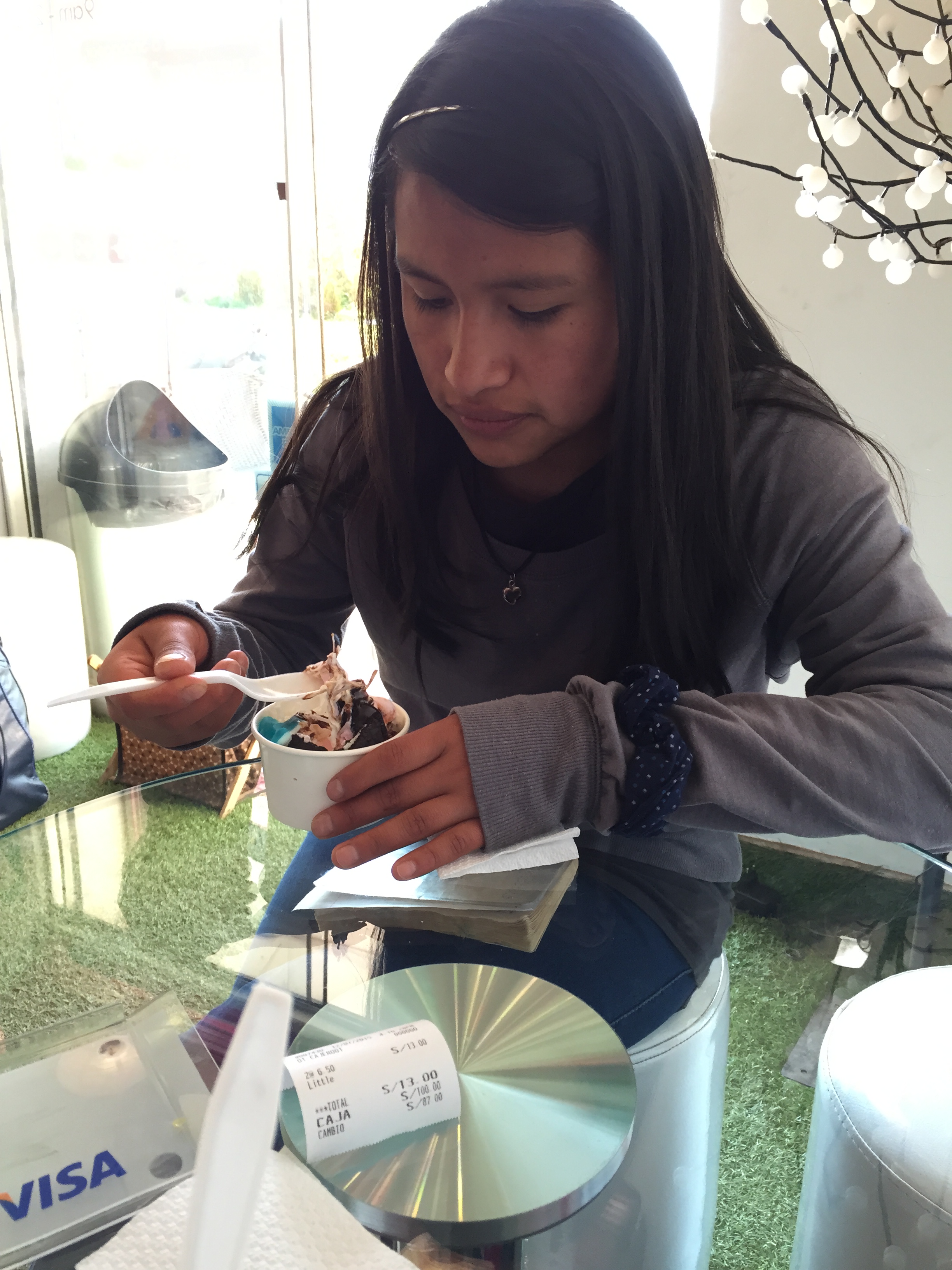 I wanted to buy all the girls a big cake from me as our last supper together, so i took the eldest Soraya with me and we went into Cusco city centre or downtown to find the Tres Leches cake they all love so much. We went to the first cake shop and they advised they didn’t have any, we then hopped on a bus and travelled a few blocks down to check out another cake shop we were told about, but unfortunately they said they didn’t have any left. So Soraya advised we should keep walking a little further and then we can maybe ask as well if we don’t find it. On our walk i asked if she fancied a frozen yogurt, her face lit up and she asked if i didn’t mind as she would love one, it was a little bonding time with the eldest as we had not actually gone out on our own anywhere, so i brought her an ice-cream, she was very happy and i am so glad she enjoyed it. From there we asked the lady at the counter if she knew where we could buy one of these cakes and she pointed to a shop across the road. Sure enough we went on in and there was a family sized tres leches cake, i immediately said we would take it and had a little message put on it and away we went back home.